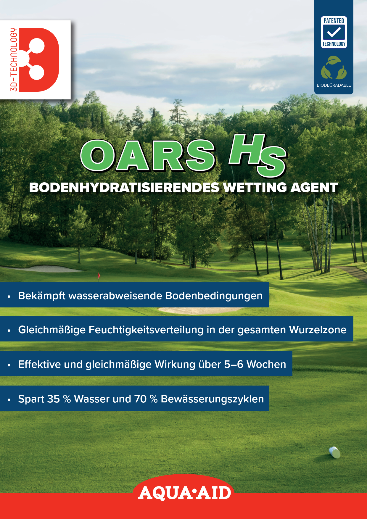 Die Ergebnisse sind richtungsweisend: Wasser wird länger gespeichert, pflanzenverfügbar in der optimalen Tiefe gehalten und gleichmäßig über das gesamte Bodenprofil verteilt. Die Technologie ermöglicht eine langanhaltende, nachhaltige Kontrolle hydrophober Bodenbedingungen und kann den Wasserverbrauch um über 35 % reduzieren – bei gleichzeitig exzellenter Rasenqualität.