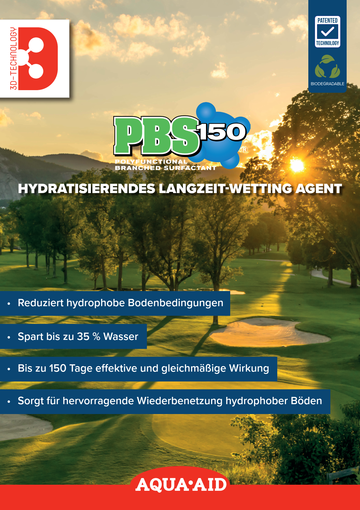Die Ergebnisse sind richtungsweisend: Wasser wird länger gespeichert, pflanzenverfügbar in der optimalen Tiefe gehalten und gleichmäßig über das gesamte Bodenprofil verteilt. Die Technologie ermöglicht eine langanhaltende, nachhaltige Kontrolle hydrophober Bodenbedingungen und kann den Wasserverbrauch um über 35 % reduzieren – bei gleichzeitig exzellenter Rasenqualität.